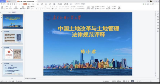 6月23日下午,广外云山(法学)工作室首席专家陈小君应邀为营员讲授《新一轮土地制度改革与土地管理法律规范评释》。本次讲座由广外“云山青年学者”、土地法制研究院副经理张凇纶副教授主持。