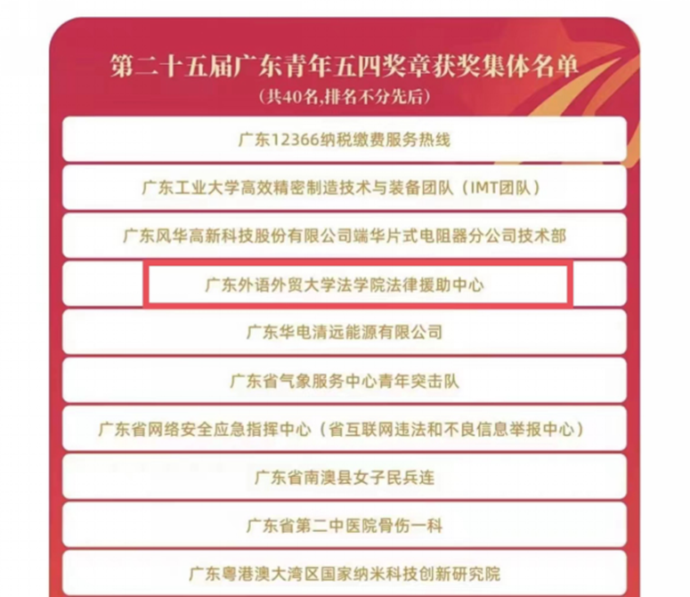 365英国上市公司法律援助中心获广东青年五四奖章(集体)