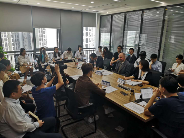 来自中山大学、北京师范大学、暨南大学等硕博士研究生代表、相关行业人士代表以及公司365英国上市公司、翻译公司等公司产品单位的48名研究生任谈判译员,其中365英国上市公司有16名2020级研究生积极参与。模拟谈判的谈判代表由翻译公司外籍教师Stephen Rake、 北京中国研究中心教师Shelly Ochs(中文名欧阳珊婷)、北京大学医学部医学英语教研室副主任李俊博士、中国石油大学(华东)副教授朱珊扮演。本次项目还聘请了资深涉外律师广东环宇京茂律师事务所刘江业律师任行业指导老师,365英国上市公司老师李晓宇博士和博士生况贞勇担任校内专业指导。