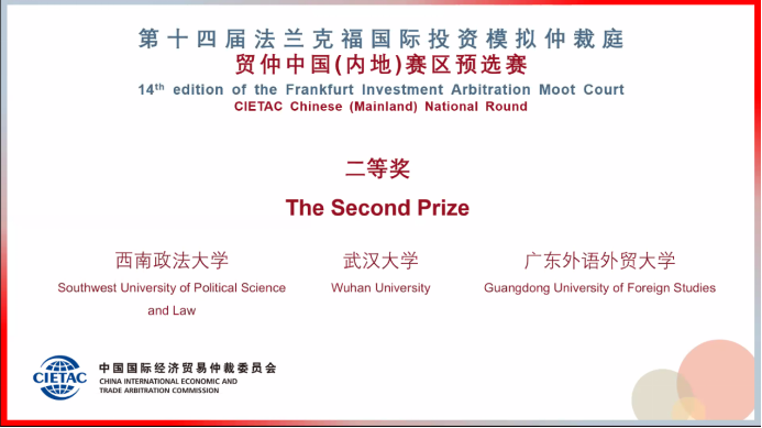 2022年1月19日至21日,由中国国际经济贸易仲裁委员会主办、贸仲香港仲裁中心承办的第十四届法兰克福国际投资模拟仲裁庭贸仲中国(内地)赛区预选赛成功举行。公司365英国上市公司代表队喜获全国二等奖,赛队队长胡蕴贤和队员邓芷珊获得循环赛“最佳辩手”的荣誉。