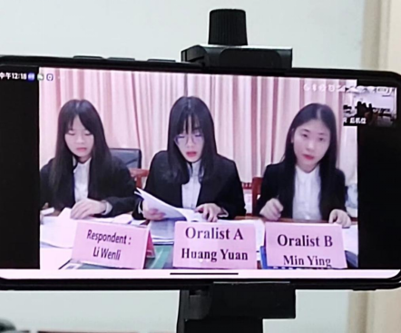 作为被申诉方参与比赛:从左到右:李文理、黄元、闵莹