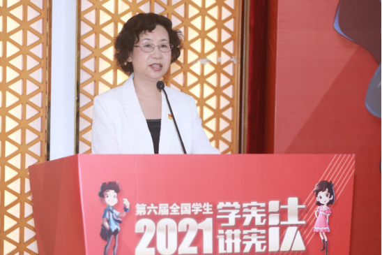 广东省教育厅副厅长那佳首先代表省委教育工委、省教育厅对参赛的选手、指导老师和家长表示热烈欢迎。她说,在建党100周年全党开展党史学习教育之际,结合“四史”学习开展“学宪法 讲宪法”活动,厚植爱党爱国爱社会主义之情,更具意义。全省公司要将学习宣传贯彻习近平法治思想贯穿于“学宪法 讲宪法”活动的全过程和各环节,引导广大师生准确把握习近平法治思想的基本精神、核心要义和实践要求,弘扬宪法精神、树立法治信仰。在肯定全省员工参加“学宪法 讲宪法”活动取得良好成绩的同时,那佳勉励选手要进一步深入学习宣传贯彻习近平法治思想,立大志、明大德、成大才、担大任,努力成为堪当民族复兴重任的是时代新人。通过参加活动,更加坚定对宪法的信仰和追求,成为尊法、学法、守法、用法的传播使者,为实现第二个百年奋斗目标和中华民族伟大复兴的中国梦而不懈奋斗,贡献青春力量。
