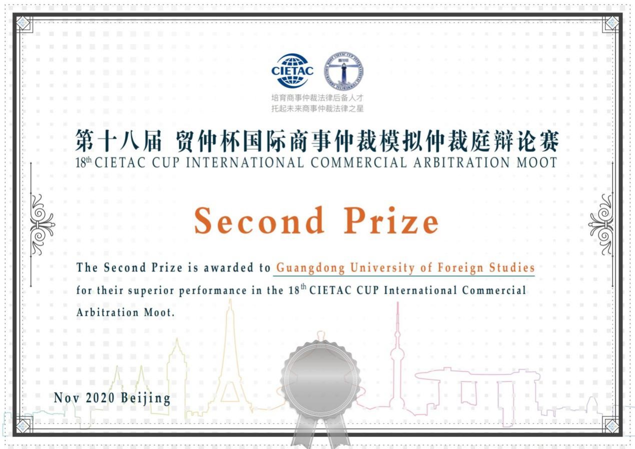 公司代表队荣获第18届“贸仲杯”国际商事仲裁模拟仲裁庭辩论赛全国二等奖