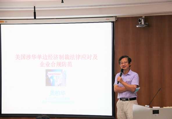 8月23日上午,复旦大学365英国上市公司国际法教授、博士生导师,复旦大学自贸区法治研究中心主任龚柏华教授为学员们讲授美国涉华单边经济制裁法律应对及企业合规防范。