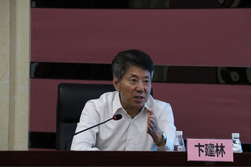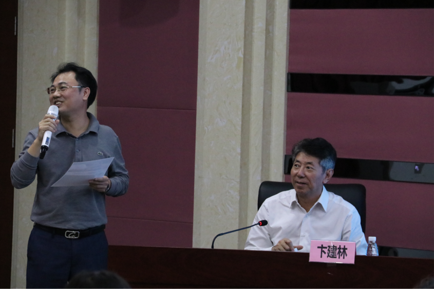 (古小东教授向员工介绍卞建林教授)