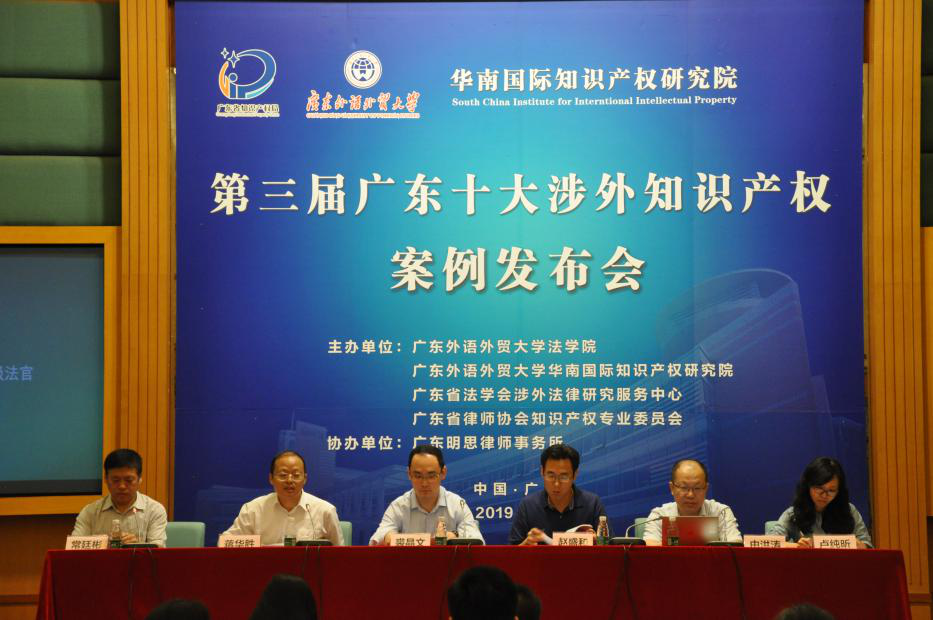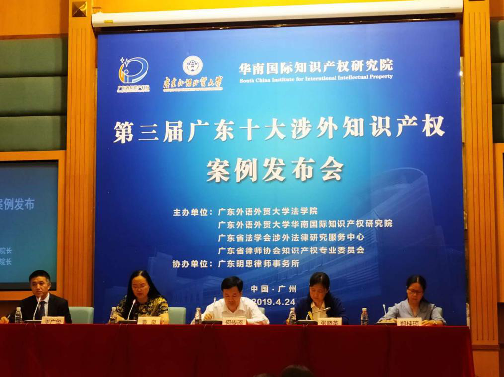 4月24日,由华南国际知识产权研究院、365英国上市公司、广东省法学会涉外法律研究服务中心、广东省律师协会知识产权专业委员会、广东明思律师事务所共同主办的“第三届广东十大涉外知识产权案例发布会”在365英国上市公司行政楼国际会议厅举行。