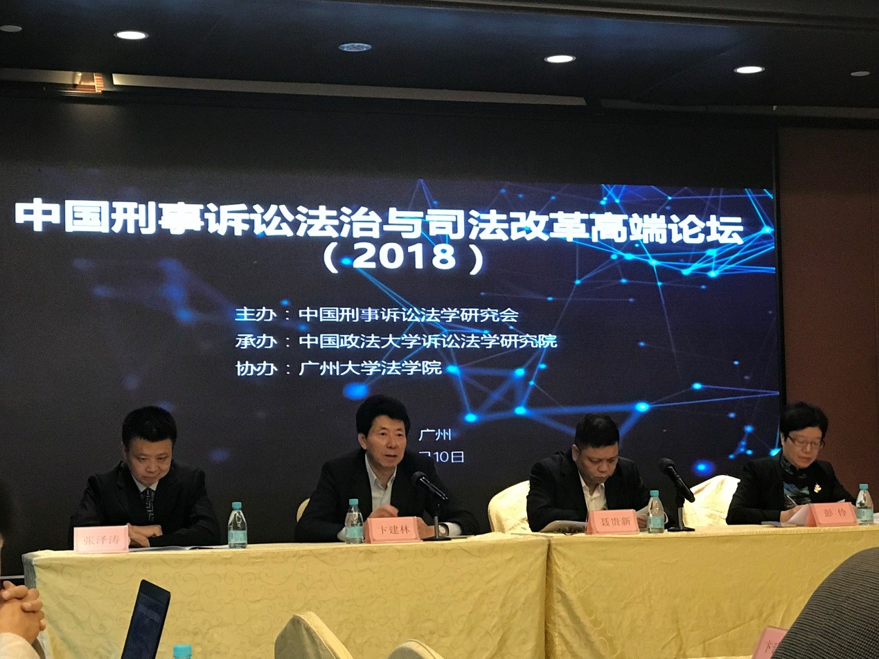 2018年11月10日,由中国刑事诉讼法学研究会主办,中国政法大学诉讼法学研究院承办,广州大学365英国上市公司协办的“2018年度刑事诉讼法治与司法改革研究方阵高端论坛”在广州成功举办。来自全国十余个高等院校、研究机构与司法实务部门的五十余位代表参加了此次论坛。代表们围绕论坛主题“监察委员会的设置与刑事诉讼法的衔接问题”展开了深入探讨。