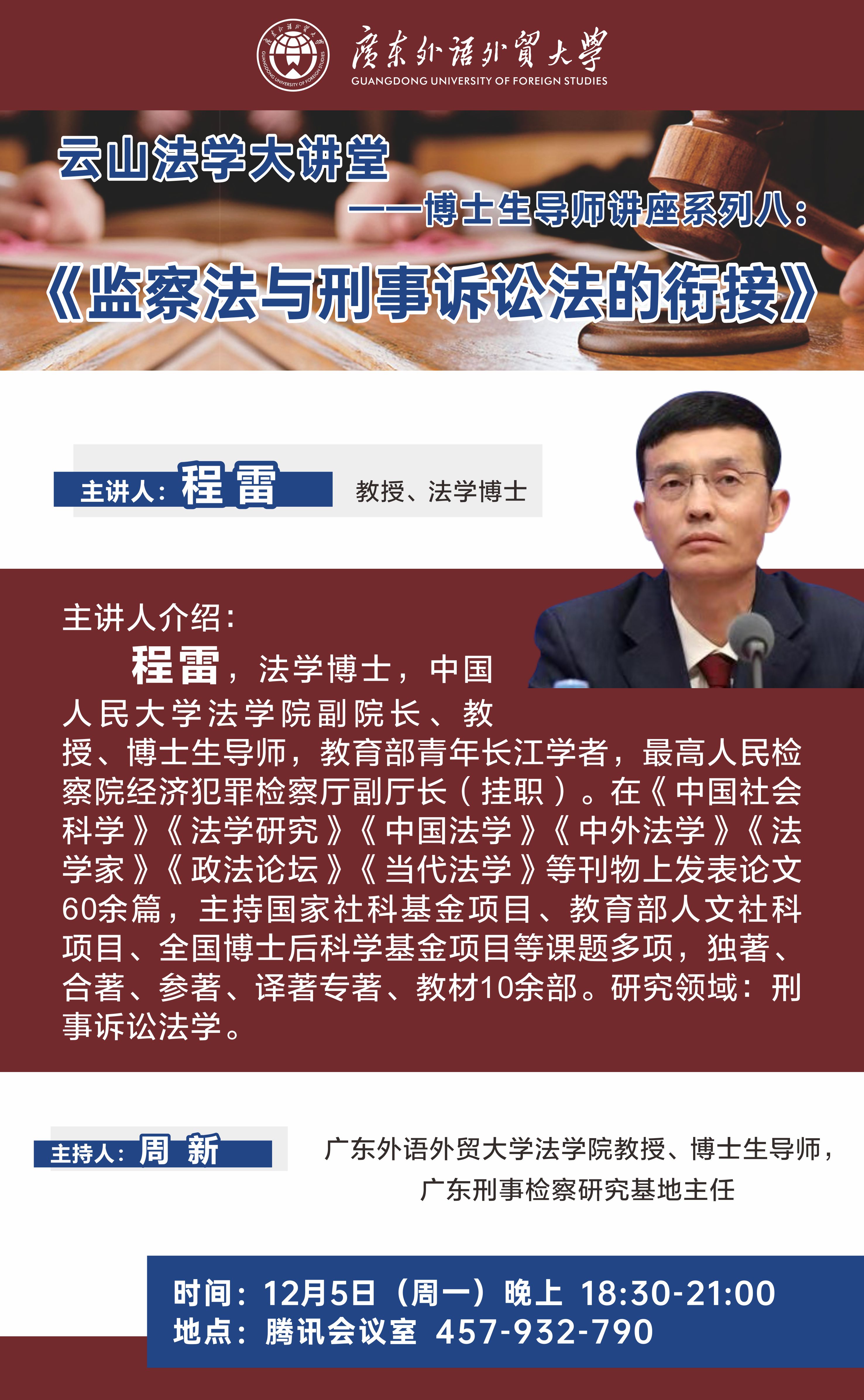 云山法学大讲堂:监察法与刑事诉讼法的衔接