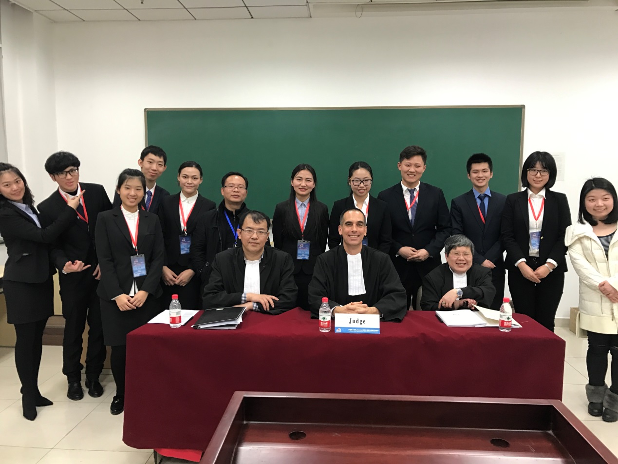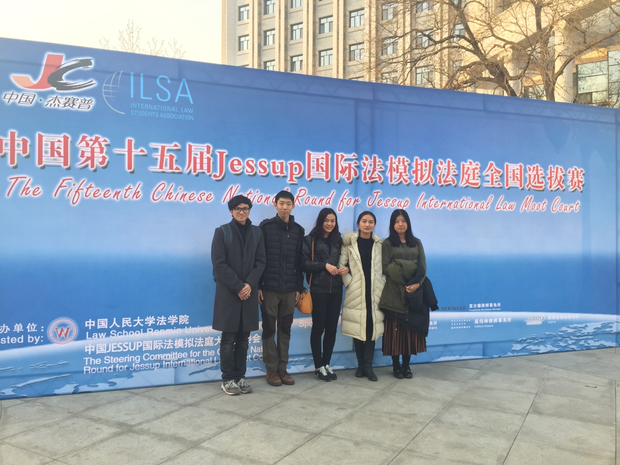 2017年2月25日至27日,中国第十五届Jessup国际模拟法庭全国选拔赛在中国人民大学举行。雪过天晴,北京这两天的天都很蓝。本次比赛共有包括北大、人大、华政、武大等49所著名高校参加,规模为历届之最。本次比赛广外代表队由修文辉老师担任教练,陆炜嘉、罗寅硕、李佩英、林哲民、黄晓敏这五名正式队员参加比赛。