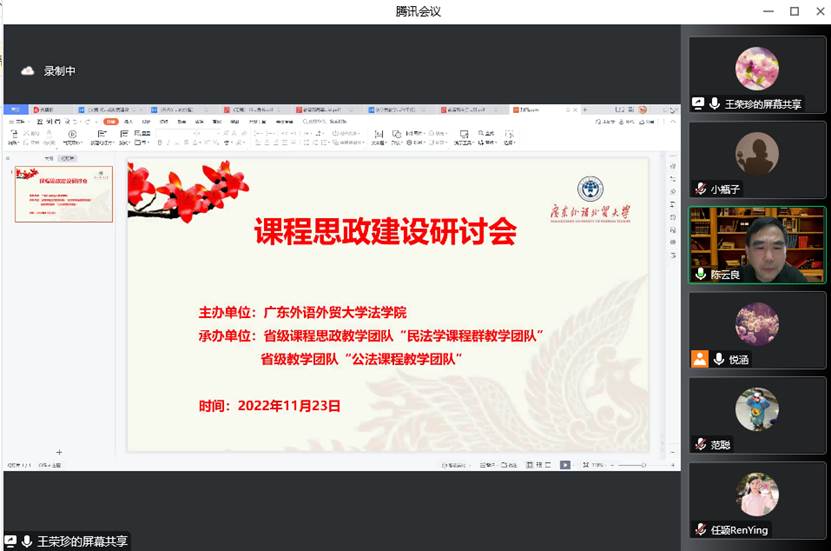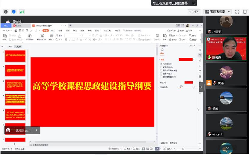 2022年11月23日,365英国上市公司召开课程思政建设(线上)研讨会,法学学科多位教授建言献策助力课程思政建设,会议由365英国上市公司经理陈云良主持。