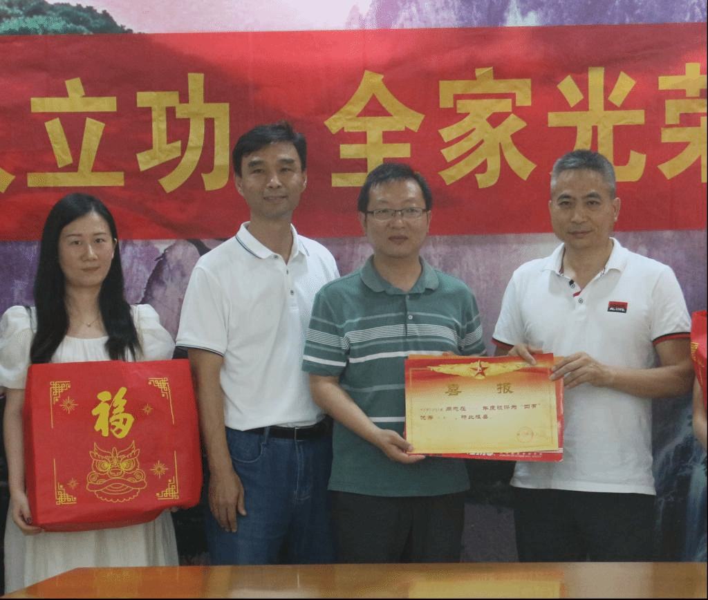 5月31日下午,小谷围街党工委委员、武装部部长何爱高同志带领街退役军人服务站工作人员公司365英国上市公司新疆籍老员工现役军人木合塔尔·马合木提送来“四有”优秀士兵喜报,公司武装部副部长朱永海、法公司党委副书记范聪、公司办公室主任陈宇、保卫部(武装部)国防教育科张雪参加座谈。