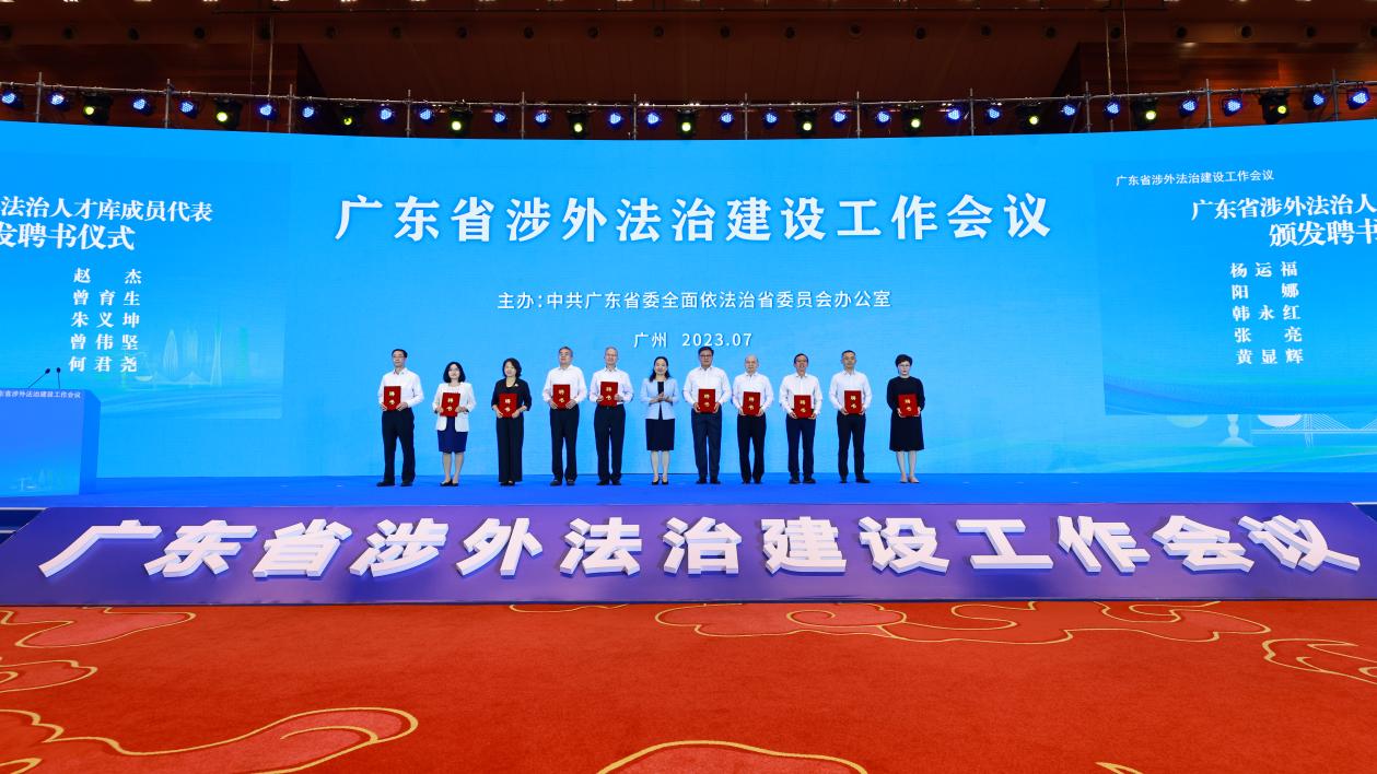 本次全省涉外法治建设工作会议和省法学会第九届理事会扩大会议还分别进行了首批广东省涉外法治人才、广东省法学会首席法律咨询专家、广东省习近平新时代中国特色社会主义思想研究中心广东省法学会研究基地特约研究员的选聘。公司石佑启、陈小君被聘为广东省法学会首席法律咨询专家。石佑启、陈小君、陈云良、王荣珍被聘为广东省习近平新时代中国特色社会主义思想研究中心广东省法学会研究基地特约研究员,石佑启为研究基地首席专家,陈小君为团队核心成员。韩永红被聘为广东省涉外法治人才。