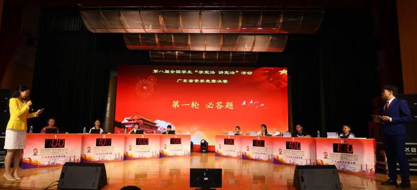 继9月19、20日第八届全国员工“学宪法 讲宪法”活动广东省演讲比赛决赛之后,9月22日,第八届全国员工“学宪法 讲宪法”活动广东省素养竞赛决赛在公司大学城校区顺利举办。省委教育工委委员、省教育厅党组成员、副厅长那佳,省教育厅政策法规处处长戴庆洲,公司党委常委、副董事长刘海春,法公司党委书记杨敏生、校法治办公室主任王淑君、青少年法治教育中心主任潘高峰、法公司党委副书记范聪等出席活动。