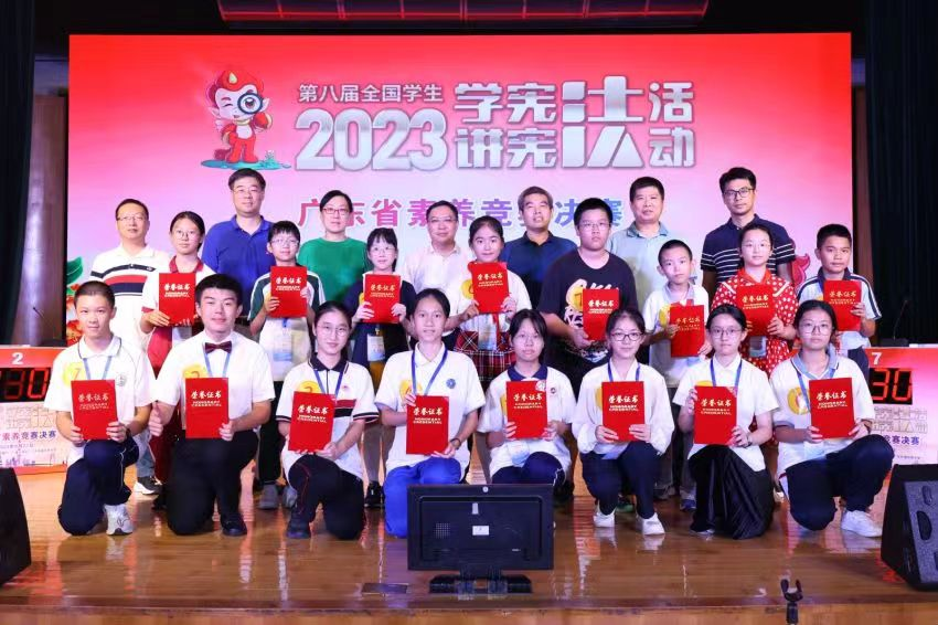 在9月19、20日第八届全国员工“学宪法 讲宪法”活动广东省演讲比赛决赛上,华南师范大学附属小学的李嘉明和汕头市龙湖区金阳小学的陈以诺荣获小学组一等奖,中山市华辰实验中学的何政恒和汕尾市华富公司的魏宇萱荣获初中组演讲比赛一等奖。汕头市金山中学的廖偲恬和广州市执信中学的林伊璇荣获高中组演讲比赛一等奖,中山大学的沙佳弈、华南师范大学的关申迪和五邑大学的冯雅雯荣获高校组演讲比赛一等奖。