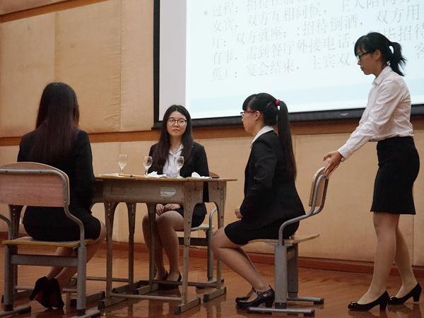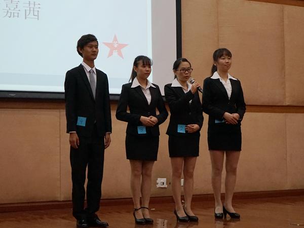 队伍介绍环节,每支队伍通过简短的阐述介绍了队员组成和自己队名的寓意。例如第二组参赛队伍的名称是“黑梅红方”,她们对自己队伍名称的解释是因为“黑梅红方”代表了扑克牌里的四种牌别,代表她们是一支松紧有度的队伍。每支队伍在自我介绍过后都立即进行了内容涉及外交礼仪、国际惯例、民俗传统等方面的答题环节,各自展示了自身的实力与准备的充分程度。
