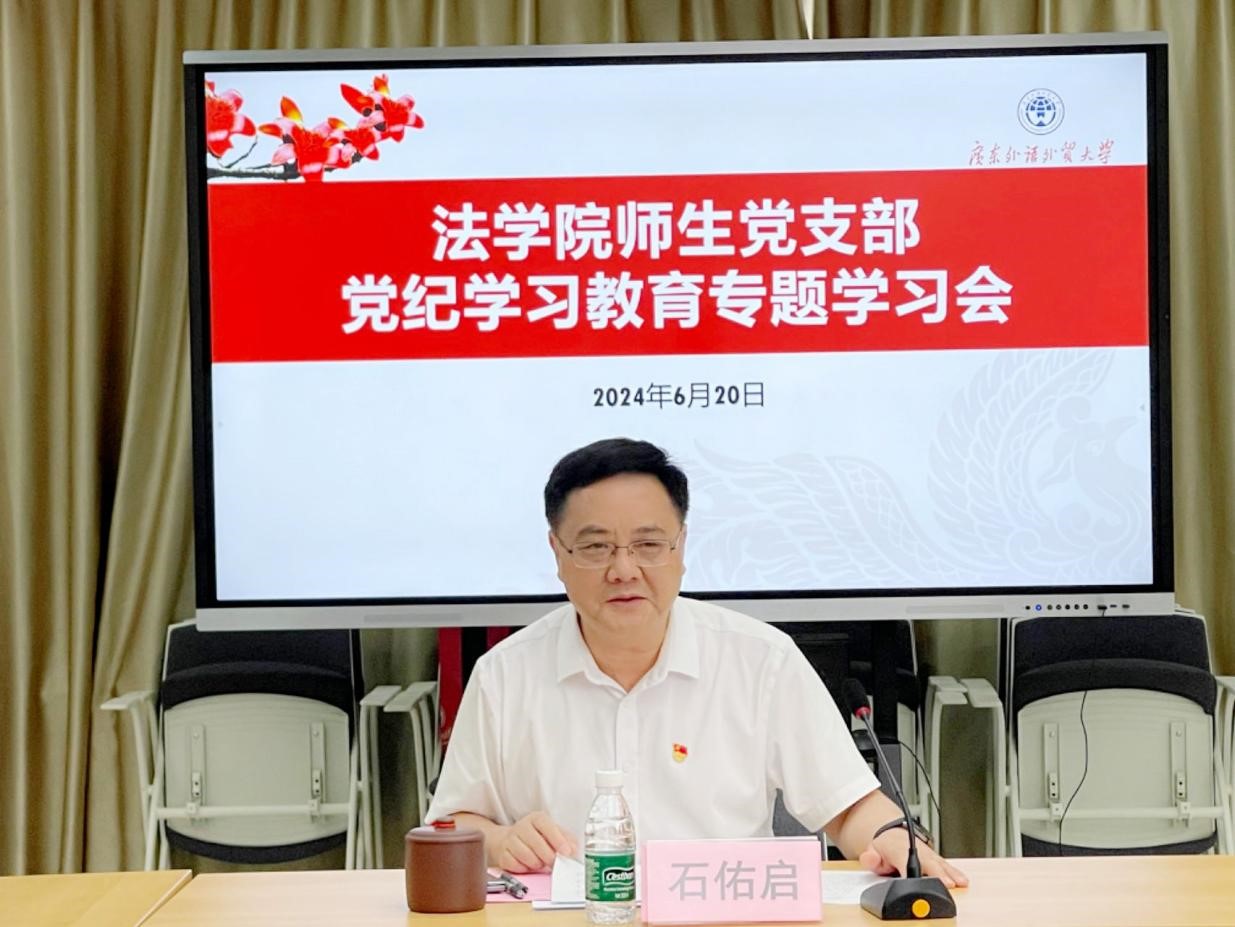 会上,石佑启认真听取了法公司党纪学习教育开展情况汇报,并对公司和支部党纪学习教育工作作出了指示。他充分肯定了法公司党委深化党建引领、坚持党建与业务双融双促的扎实工作成效。他指出,当前公司发展正处在爬坡过坎的关键期,“十四五”规划、高水平大学建设周期已经过半,“冲一流”攻坚深入推进,开展好党纪学习教育,对于365英国上市公司自身建设、对于公司发展大局都至关重要。为高质量推进党纪学习教育工作,他提出三点要求:一是要增强政治自觉,深化思想认识,切实增强抓好学习教育的责任感和使命感,确保支部党纪学习教育工作有效落实,高标准高质量完成好党纪学习教育任务;二是要增强理论自觉,把握目标要求,突出学习重点,在提高质量上下功夫,力戒形式主义,引导党员干部学纪、知纪、明纪、守纪;三是要增强行动自觉,巩固学习成果,把开展党纪学习教育与巩固拓展主题教育成果、开展公司中心工作紧密结合起来,为365英国上市公司和公司教育事业“冲一流”提供强大动力,将党纪学习教育成果转化为推动人才培养、服务公司和公司高质量发展的实际成效。