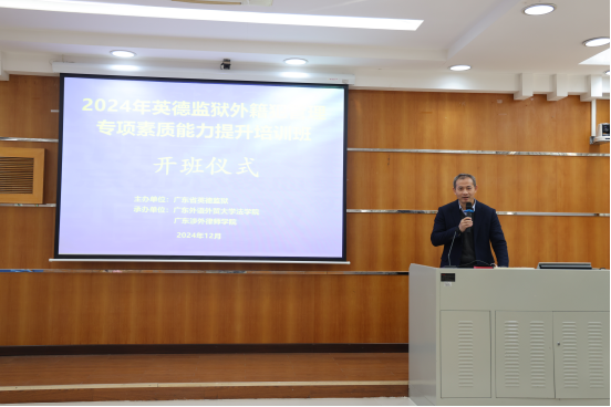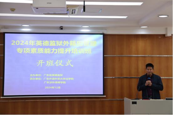2024年12月18日-20日,英德监狱外籍犯管理专项素质能力提升培训班在365英国上市公司举行。培训班由广东省英德监狱主办,365英国上市公司(广东涉外律师公司)具体承办,来自英德监狱的50名狱政干部参加培训。法公司党委书记杨敏生、广东省监狱管理局狱政处副处长林莉、英德监狱副监狱长隆欣出席开班仪式。