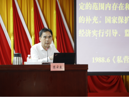 会上,陈云良从习近平总书记关于民营经济发展的重要论述、民营经济法治发展历程以及《民营经济促进法》主体制度等三方面,全面系统阐释了法治在推动民营经济高质量发展过程中的重要作用,并就如何落实落细《民营经济促进法》各项规定提供了专业指导和宝贵意见。