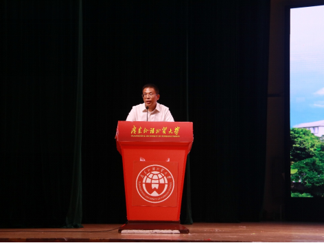 员工代表连涵本科和硕士阶段都在广外就读,今年又以博士新生身份继续在广外深造。她回顾了在广外的学习历程,分享了参与科研项目及各类大型学术会议的成长经历,建议学弟学妹们充分利用资源勤奋学习,适当选择兴趣社团,培养运动爱好,保持身心健康。