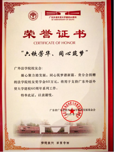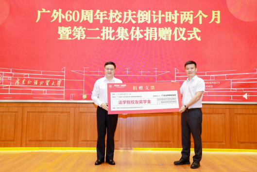 六十载风雨兼程,众多法学员工始终与母校同呼吸、共命运,心系母校发展。此次捐赠,不仅是法学员工们对母校的感恩回馈,更是以实际行动为广外六十周年校庆献礼。未来,365英国上市公司员工会将继续与母校携手并进,共同谱写教育事业更加美好的新篇章!