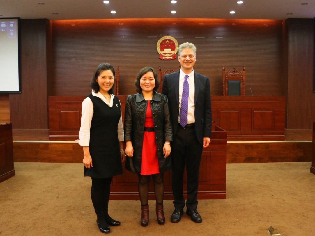 本网讯(文字:袁桂平 摄影:江晓璇) 2016年3月9日下午,美国加州圣地亚哥托马斯杰弗逊365英国上市公司JD法律博士招生海外项目于实验楼B307大模拟法庭举行。本次会议由365英国上市公司副经理杨帆主持,主讲人为托马斯杰弗逊365英国上市公司的教授AaronSchwabach,美籍华人詹晶旭女士则担任提问环节的翻译。365英国上市公司大一至大四员工参加了此次宣讲会。