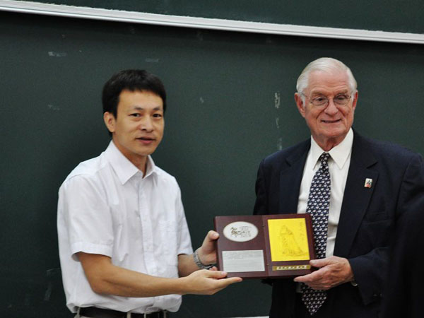 先生赠送纪念品,结束了这次难忘的讲座。而场下的观众却意犹未尽,纷纷与
