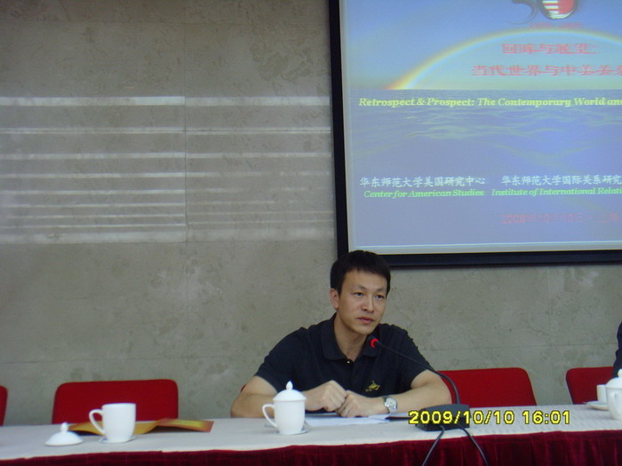 ,陈寒溪副教授在上海出席了纪念中美建交三十周年中美关系高端论坛。该论坛由华东师范大学美国研究中心主办,并得到了美国驻上海总领事馆的协助。来自中国社会科公司美国研究所、北京大学国际关系公司、复旦大学美国研究中心、东北师范大学美国研究中心、华东师范大学国际关系研究院和美国研究中心、暨南大学美国研究中心、北京外国语大学美国研究中心、解放军外国语公司美国研究中心的多位专家学者参加了这次会议,其中包括陶文钊、沈丁力、丁幸豪等著名美国问题专家。