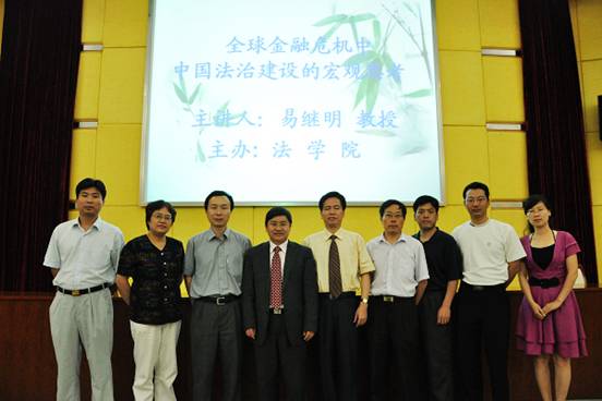 教授在南校区八角楼会议室给公司师生带来了一场题为“全球金融危机中中国法治建设的宏观思考”