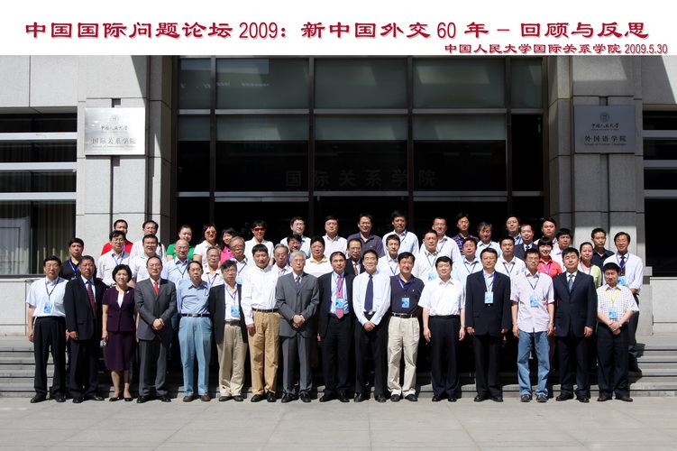 ,由国内17家国际问题教研机构发起、中国人民大学国际关系公司主办的年度“中国国际问题高级论坛”,以“新中国外交六十年——回顾与反思”为主题,在中国人民大学召开。受邀出席这次研讨会的代表包括:中共中央联络部部长助理郭亚洲先生、外交公司党委书记秦亚青教授、北京大学国际关系公司副经理贾庆国教授、中国现代国际关系研究院经理崔立如研究员、中共中央党校国际战略研究所所长宫力教授、中国社科院世界经济与政治研究所副所长王逸舟教授、上海社科院副经理黄仁伟研究员、新加坡国立大学东亚研究所所长郑永年教授、复旦大学国际关系与公共事务公司副经理陈玉刚教授,等等。公司肖刚教授、陈寒溪副教授受邀参加研讨会,并分别在“中国的双边外交战略”和“西方国际关系理论与中国外交”这两个讨论小组中作了主题发言。
