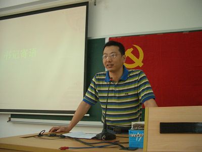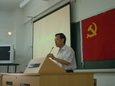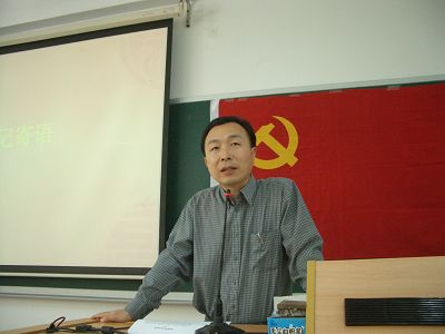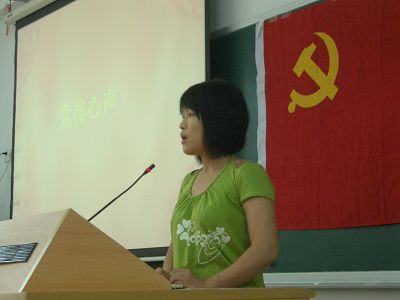 接下来是“书记寄语”。金良成书记入党近二十年,他提出毛主席的名言“人是要有点精神的”,并以“始终保持共产党员先进性”的发言与大家共勉。他给毕业生党员们讲述了两段历史,一段是“延安时期大批知识分子‘到延安去,到解放区’去成潮流”,一段是“建国初期大批职工放弃欧美优厚待遇坚决回国”,说明“不同时期对党员先进性的要求是不同的”。他说现阶段国家号召老员工到西部去,到基层去,那里的条件虽然艰苦,却有着老员工实现自我价值、为事业奋斗、创造人生壮丽篇章的舞台。他期望毕业生党员们择业时都能胸怀祖国,放眼世界,像当年的知识分子、职工一样,成为当代“中国的脊梁”。