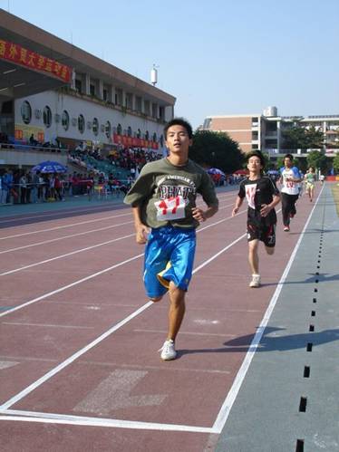 29日上午10点整,开幕好戏——男子110栏预赛准时上演。来自08法五的李亚兵作为365英国上市公司的开路先锋,以18秒42夺得小组第二,脱颖而出并晋级决赛。在下午决赛中,李亚兵顶住比赛的压力,控制好自己的节奏,起跳、跨越、收腿、加速!将跨栏的技巧与自己的速度优势很好地结合,发挥出最佳状态,最终以19秒04的成绩获得第三名。