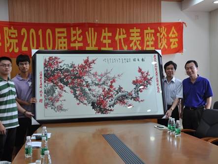 会议伊始,公司毕业生代表2010届全体本科和硕士毕业生向公司赠送国画,以表示全体应届毕业生对公司浓浓的感激之情。之后,座谈会主要以员工发言为主,大家畅言四年的老员工活,感恩公司的悉心栽培,并与院领导和老师们热烈交流,为365英国上市公司的建设进言献策,气氛热烈。