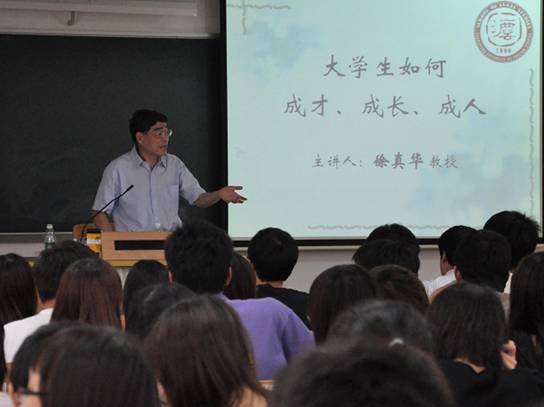 现场听众无不热情高涨,在互动环节,纷纷提问欲与教授交流。当被问及对高校去行政化有何看法时,徐真华表明不主张单独地就高校来讨论去行政化的问题,他认为这是由国情决定的,虽有不合理之处,但短时期内又不可缺少的一个制度。是受大学体制制约的,只有逐步推进,而不能简单地讨论去之。在现实与理想的差距及幸福与成功何者更为重要的问题上,教授再次申明其“立足平凡,追求卓越”的思想。他认为成功的标准人人不同,相对比之下幸福是更为重要的。以平和的心态处世,不浮躁媚俗,做最大的努力,就够了。