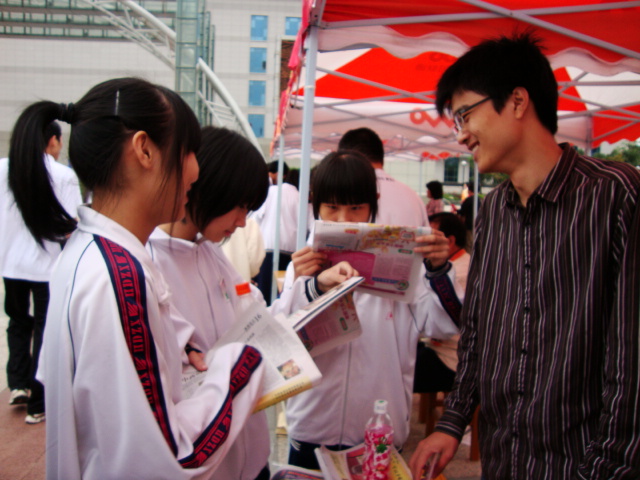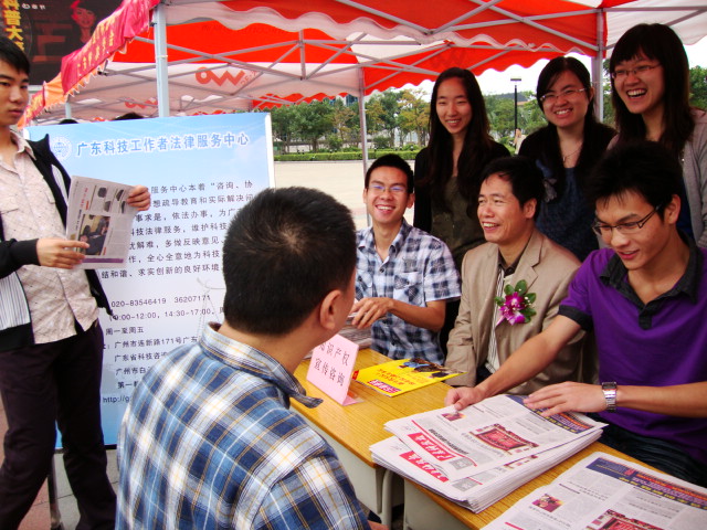 现场气氛热烈,会场人员踊跃地向服务队提出相关法律问题,蔡镇顺和同学们也热情高涨,为现场提问一一耐心细致地回答。值得一提的是,现场的中员工对公司服务队所在摊位表现出极大的兴趣,尽管他们所问的大部分问题并非与法律相关,而是更愿意与哥哥姐姐们探讨生活中的所见所闻所想,例如如何看待世界末日以及克隆等问题,公司服务队成员也是有问必答,说出对这些问题看法,不时亦能与他们擦出思想的火花。同时,我队成员也不忘鼓励他们平时要善于思考,充分利用身边的书籍及网络等资源扩充自己的知识面。此外,部分同学表示以后有意向从事法律工作,公司服务队的同学也欢迎这些同学日后报考公司。