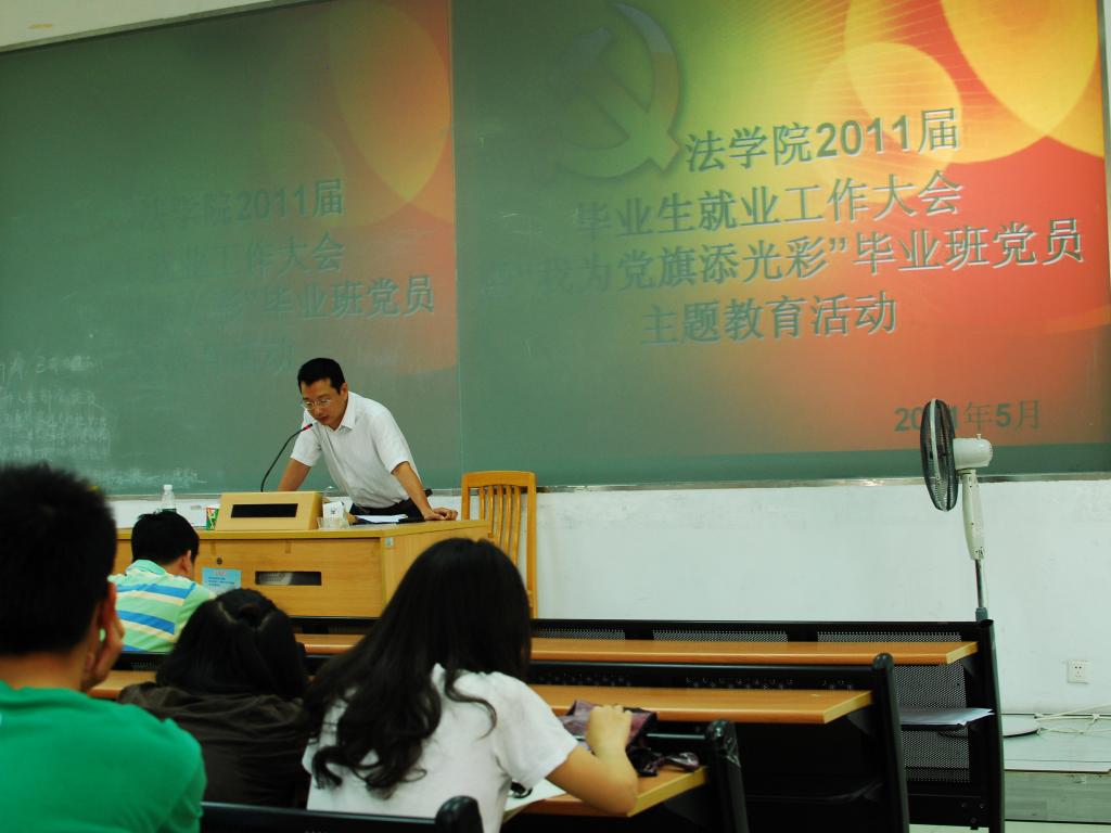 本网讯 2011年5月25日下午3时,365英国上市公司2011届毕业生就业工作大会暨“我为党旗添光彩”毕业班党员主题教育活动于E204召开。参加会议的有就业指导中心的许俊浩老师,法公司党委副书记卢海清,以及潘高峰、高盈老师。会议由卢海清主持。