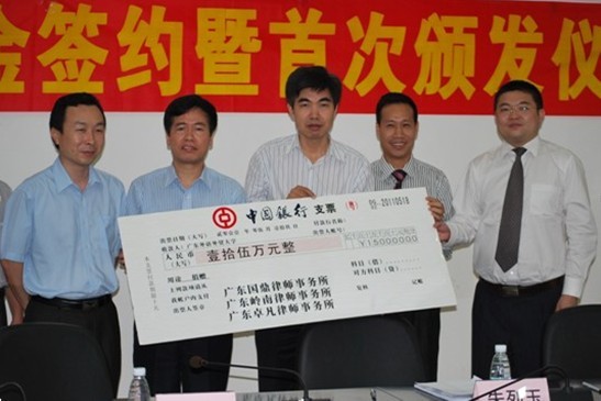 “律治”助学金是为了支持遵守公司各种规章制度、学习刻苦但家庭经济困难的员工顺利完成学业,为支持法律硕士教育中心教育事业发展,由广东国鼎律师事务所、广州岭南律师事务所、广东卓凡律师事务所三家律师事务所共同捐资在公司设立的。