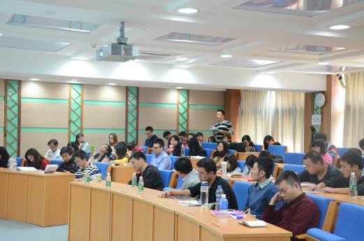 教授的精彩演讲报以热烈的掌声。讲座结束后的互动交流环节,
