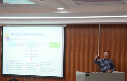教授重点谈到我国现阶段的罢工事件,认为我国现阶段的罢工是一种“群体性”、“混合性”、“谈判前”和“非法”的罢工。随后,他还分析了“劳动关系(争议)群体化”的原因及其弊端。最后,