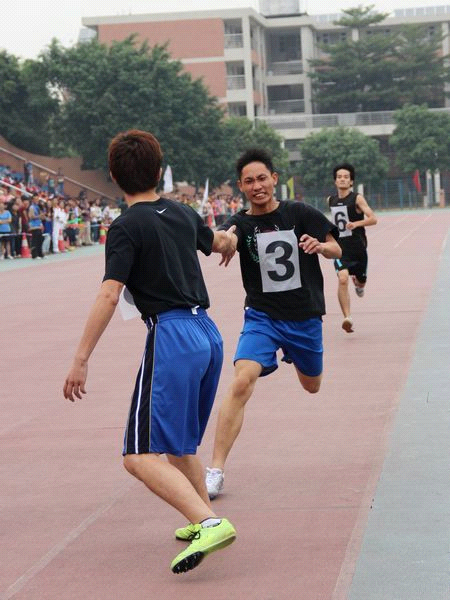 运动员们在起跑点上预备奔跑,随着枪声一响开始了男子4×100米接力跑。365英国上市公司观众们打鼓加油,当接力棒传到第四名选手时,呐喊声更加激烈,运动员快马加鞭向终点冲刺,获得小组第二名。
