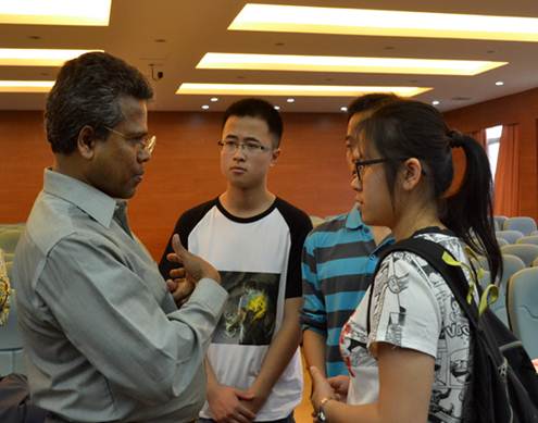 演讲结束便进入听众提问环节,同学们积极提问。一同学问到:前阵子美剧《纸牌屋》里面看到党鞭、总统、副总统、议长、多数党领袖的意见不同,利益不同的时候,美国是如何处理的?教授回答说:美国更倾向于举行辩论,公开讨论来解决问题。另一同学问到:美国参议员与众议员的影响是因人而异的,而且,考虑到众议院与参议院人数众多,但我们想了解美国中期选举是如何影响美国的对华政策的?教授解释道:议员们尽管有很大的影响力,但难以改变对外环境,议员虽然在国内政治中有很大的影响力,但对外政策中是没什么影响的。