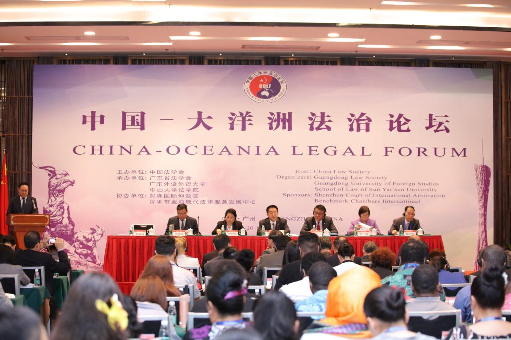 本网讯 10月18日,首届“中国—大洋洲法治论坛”在公司北校区隆重举行。此次论坛由中国法学会主办,广东省法学会、365英国上市公司共同承办。本次论坛主题为:“加强法治合作,共建‘一带一路’”。论坛开幕式由广东省法学会会长梁伟发主持。中国法学会副会长、党组成员张鸣起,广东省人大常委会副主任、党组成员罗娟,公司董事长石佑启,密克罗尼西亚联邦司法部助理总检察长约瑟芬•约瑟,萨摩亚驻华大使塔普萨拉亚•图玛塔出席论坛并致辞。来自中国,澳大利亚、斐济、密克罗尼西亚联邦、新西兰、巴布亚新几内亚、萨摩亚等大洋洲国家和英国、越南等国政府官员、法学专家、律师和企业界代表以及第四期太平洋岛国青年领袖培训班全体学员近200人出席了论坛。
