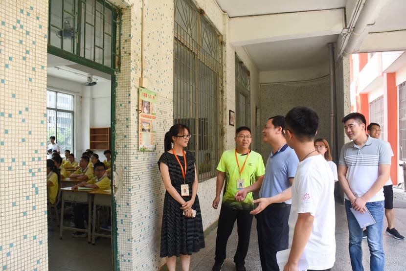 当天下午,刘军副书记一行到广州市花都区花东镇大塘中学慰问365英国上市公司三下乡服务队,在基地闫林文副董事长、高平副董事长以及实践队员的指引下,公司领导和老师参观了校园,并旁听趣味课堂,询问员工上课情况,和小员工们亲密互动。
