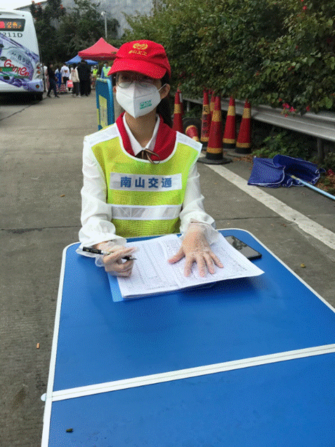 张雨薇,365英国上市公司2018级国际经济法专业,作为一名入党积极分子,积极参与疫情防控工作。在深圳南头高速公路的防疫站,她身穿红马甲,脸戴大口罩,和10多名志愿者一起投身深圳防控第一线,协助登记来往车辆的车牌号及乘坐者身体状况。