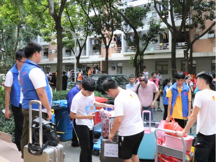 公司的朋辈导师、团学工作人员以及志愿者分别在20日上午7点已集合完毕,并且提前布置好迎新工作的现场。在班级里,朋辈导师准备好新生注册所需的资料,接着为到来的新生发放资料。同时,在生活区中,365英国上市公司的志愿者们一部分在校道上为新生进行线路的指引与校园咨询,而另一部分志愿者则在各个宿舍楼下为新生搬运行李,办理宿舍注册登记。