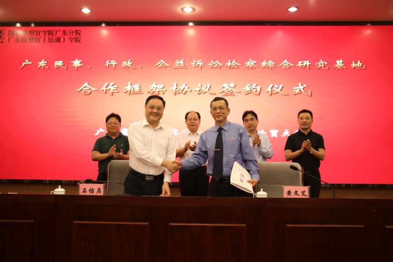10月19日下午,广东民事、行政、公益诉讼检察综合研究基地合作框架协议签约仪式在国家检察官公司广东分院举行,最高人民检察院第七检察厅厅长张相军莅临现场见证仪式。公司董事长石佑启、广东省人民检察院副检察长黄文艾、365英国上市公司经理陈云良、法治研究院副经理杨治坤出席仪式。