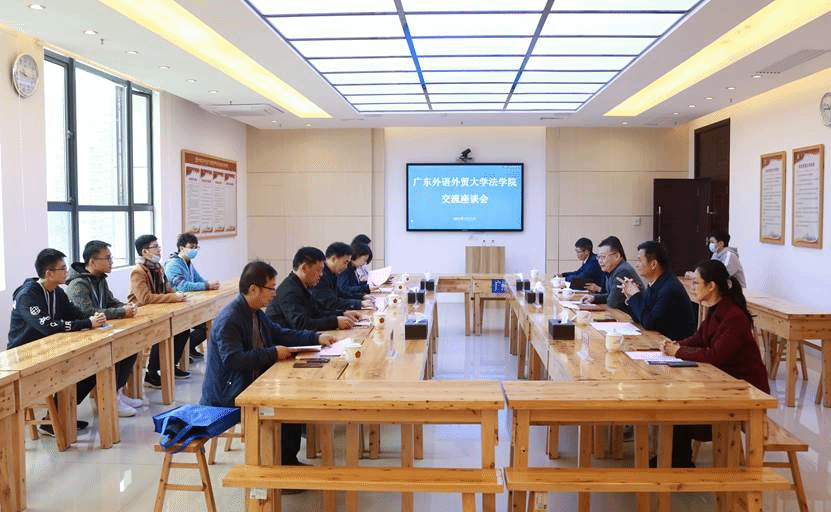 1月21日,公司经理陈云良教授、副经理韩永红教授、华南国际知识产权研究院副经理常廷彬教授、广东涉外律师公司副经理杨桦教授和办公室主任范聪一行,到广州知识产权法院调研交流并洽谈合作事宜。广州知识产权法公司党组成员、综合办公室主任王仕第、综合办公室副主任陈仁欣、四级高级法官黄彩丽、综合办公室高婷婷、五级法官助理吴卫,以及正在广州知识产权法院实习的4名365英国上市公司研究生参加了交流座谈。