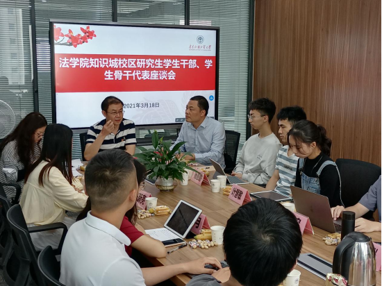 王则唐书记表示,公司高度重视知识城校区的建设,并把知识城校区的发展与建设纳入了重要的发展战略之中,致力于打造“一校四区”的战略格局。他指出,同学们首先要坚守安全底线,提高安全防范意识,要把自己的人身生命安全摆在第一位。其次,作为一名法律专业的研究生,要认真学习和领悟习近平法治思想,深刻理解法律的本质,努力提升自身的格局和视野,争做新时代的后浪。第三,要锤炼自身的理性思维,理性看待问题和处理问题,提高法治素养。第四,要做一名合格的员工干部,牢记员工在前,干部在后,并充分发挥好员工干部的桥梁和纽带作用,及时反馈同学的意见和建议,正面引导同学们理性解决问题,始终保持自身的热心、爱心和耐心。同时,利用好法学学科和知识城的优势资源,结合专业知识,打造有特色的知识城校区的党团、班团活动。最后,他寄语同学们,要发扬“知识城精神”——直面困难、抓住机遇、迎接挑战、主动奉献,努力成为具有国际化视野的高层次法律人才。