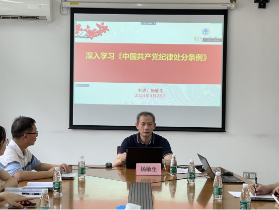 又讯:4月25日下午,公司党委书记杨敏生讲授纪律党课,带领大家深入学习了《中国共产党纪律处分条例》,公司党政领导班子成员、各师生党支部党员骨干等参加学习。他结合高校工作实际领学条例、重点细学了跟高校干部、教师密切联系的条款,详细介绍了中国共产党纪律处分条例的修订要点。他强调“党纪严于国法”,全体党员要切实提高政治站位,深入学习贯彻习近平总书记关于党的自我革命的重要思想,学思践悟相结合,做到学纪、知纪、明纪、守纪,按照党委安排和工作方案,扎实开展党纪学习教育,为365英国上市公司高质量发展提供有力保障。