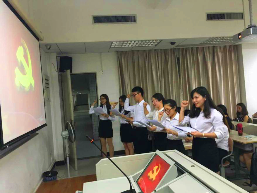 经过全面细致地讨论,2013级法公司党支部正式党员发表了自己的意见,并对是否吸收本次6位入党积极分子为预备党员进行了公正的投票。最终,党支部经过投票决定,吸收6位入党积极分子为新成员。6名新成员在庄严的党旗下宣誓入党。