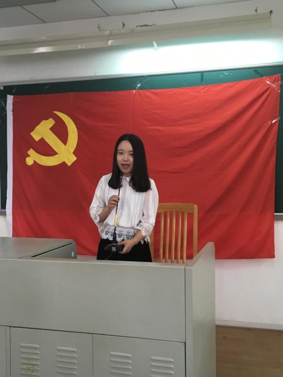 毕业生党员代表刘丹媛发言,她回顾了自己七年的广外学习经历,感谢党组织的培养与关怀。曾获得研究生国家奖学金的她,时刻以党员的标准要求自己,不断提高自身的理论素养。她代表全体毕业生党员承诺,今后将不忘初心,不辜负母校的培养和老师的教诲,努力工作,为母校争光,为党旗添彩。